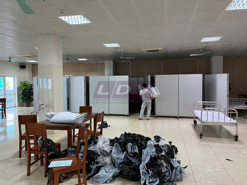 Sản xuất, lắp đặt, bàn giao sản phẩm vách ngăn di động có bánh xe tại Bệnh viện quân y 354 Hà Nội